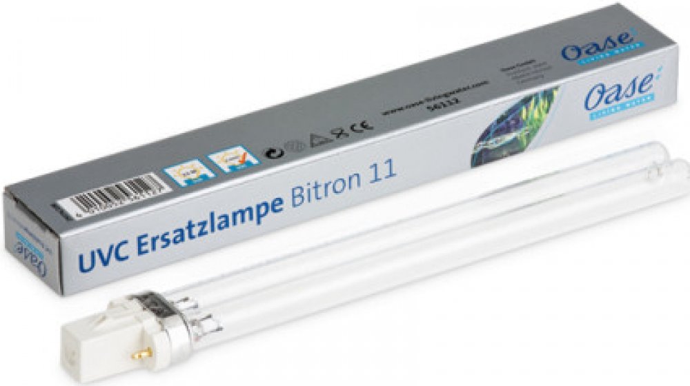 Spolehlivá náhradní UVC žárovka s výkonem 11 W od značky OASE se vyznačuje výbornou kvalitou. Protože je UVC filtrace s příkonem 11 W většinou provozována nepřetržitě, může její světelný výkon po přibližně 8 000 hodinách slábnout. Proto doporučujeme výměnu žárovek v pravidelných intervalech. Žárovka je vhodná pro použití v přístrojích Bitron C 11 W, FiltoClear 6000, FiltoClear 11000, FiltoClear 15...