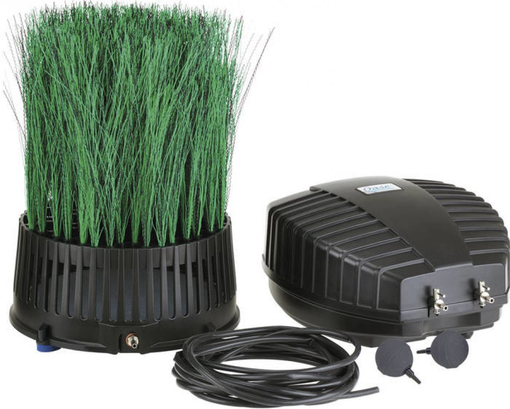 Kompresory pro zahradní jezírka, OxyTex Set 1000 CWS Sada designového vzduchovacího kamene se vzduchovacím kompresorem a příslušenstvím. Jedinečné spojení zásobování kyslíkem, cirkulace a odbourávání živin. Díky plošně optimalizované struktuře vláken vzniká hodně prostoru pro mikroorganizmy. Zvyšuje výkon Vašeho současné jezírkové technologie až o 25 procent! Atraktivní design se vzhledem rostlin se stane nenápadnou součástí Vašeho jezírka. Sada obsahuje: 1x kompresor AquaOxy 1000 + 1x vzduchovací element OxyTex + propojovací hadičky (2x 5m)