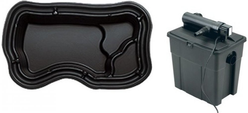 Plánujete vystavět malé okrasné jezírko a zamýšlíte se nad tím, jak udržet vodu čistou? Pro Vás jsme připravili set, který obsahuje plastové jezírko 1000 l a MultiClear Set 5000\, filtrační set. Plastové nádrže do 1000 l představují dobrou alternativu jezírkovým fóliím. Již integrované bažinné a rostlinné zóny usnadňují osázení a využití čerpadel. Pontec MultiClear Set 5000 je filtrační set s UVC lampou 7 W proti vznášejícím se řasám a filtračním materiálem vhodný pro jezírka do 5000 l vody bez ryb. V případě zarybnění je vhodná pro jezírka do maximálního objemu 2500 litrů. Průtokové filtry stojí nad vodní hladinou, odkud voda samovolně vytéká zpět do jezírka.