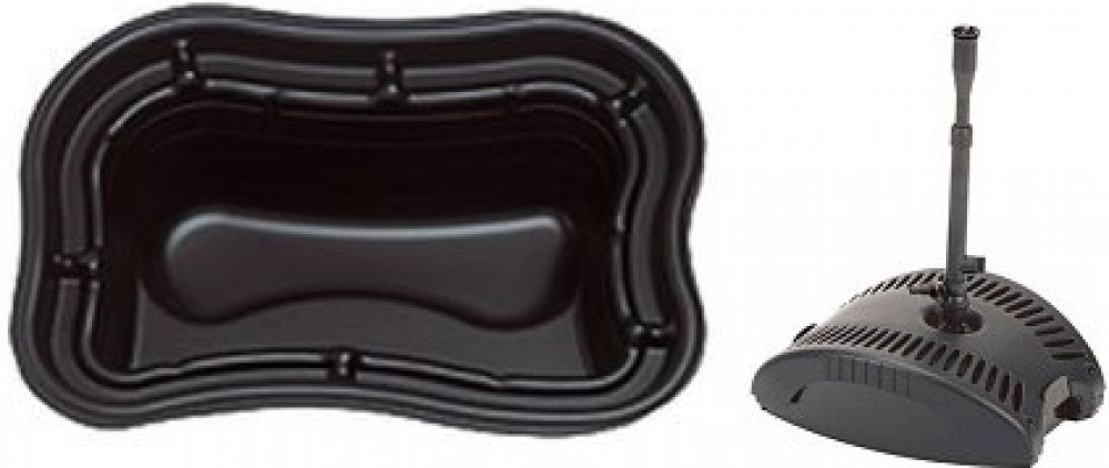 Plastové nádrže do 1000 l představují dobrou alternativu k jezírkovým fóliím. Již integrované bažinné a rostlinné zóny usnadňují osázení a využití čerpadel, např. právě pro fontánku.