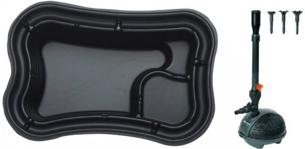 Rozhodli jste se vybudovat okrasné jezírko na Vaší zahradě a rádi byste ho ozdobili fontánou? Právě pro Vás je vhodný set složený z plastového jezírka 750 l a fontánového čerpadla PondoVario 2500. Plastové nádrže do 1000 l představují dobrou alternativu k jezírkovým fóliím. Již integrované bažinné a rostlinné zóny usnadňují osázení a využití čerpadel, např. právě pro fontánku. PondoVario 2500 je jezírkové čerpadlo pro realizaci fontán. Fontána je vybavena teleskopickou tyčí na kloubu pro snadnou instalaci. Čerpadlo je opatřeno čtyřmi nástavci pro čtyři různé vodní prvky - sopka, paprsky, zvon, kalich. Regulovatelný druhý výstup čerpadla.
