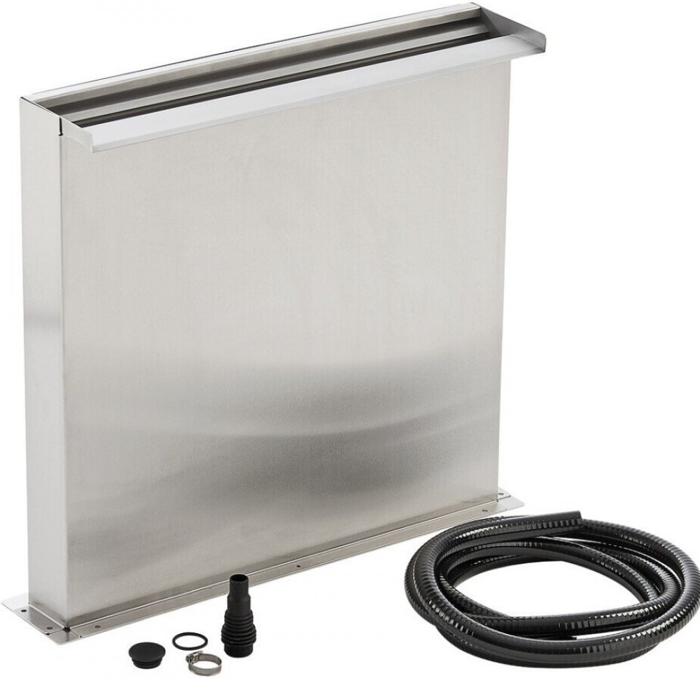 Waterfall Kit 60 Waterfall Kit je kompaktní a robustní z vysoce kvalitní nerezové oceli a je dostupný ve 2 šířkách snadná instalace na pevném podkladu (například betonové desce) pro použití v mělké vodě nebo na hraně jezírka lze požít i v kombinaci s vodním rezervoárem s vhodným krytem, usadíte Waterfall Kit na něj a na víko rezervoáru přídáte dekorační kameny zadní panel je odnímatelný pro snadnou údržbu vstup od čerpadla ze spodní části s vnitřním závitem 1" součástí dodávky je hadicový trn s vnějším závitem 1" a připojením na hadice 19, 25, 32 a 38 mm, hadicová spona, 3 m hadice a ucpávka na jeden ze vstupů je možné doplnit o osvětlení pomocí odpovídajícího LED pásku Waterfall Illumination skrz předinstalovanou průchodku