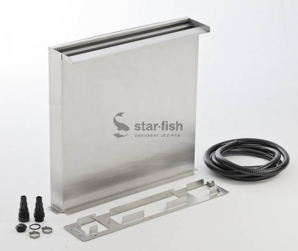 Stojan pro vodopád v moderním designu z ušlechtilé oceli s šířkou výpusti 600 mm. Je vybaveno montážní základnou pro správnou stabilitu. Možno nainstalovat do štěrkového lože nebo na okraj jezírka. Montáž jednoduchá díky dvěma postranním upevňovacím sponám. Další možností je montáž v kombinaci se zásobníkem vody OASE WR 125 a odpovídajícím víkem WR 125-T. Snadná údržba díky odnímatelné zadní stěně. Kompletní dodání včetně hadic a spojovacích dílů, jednoduše připojíte čerpadlo dle vlastního výběru.