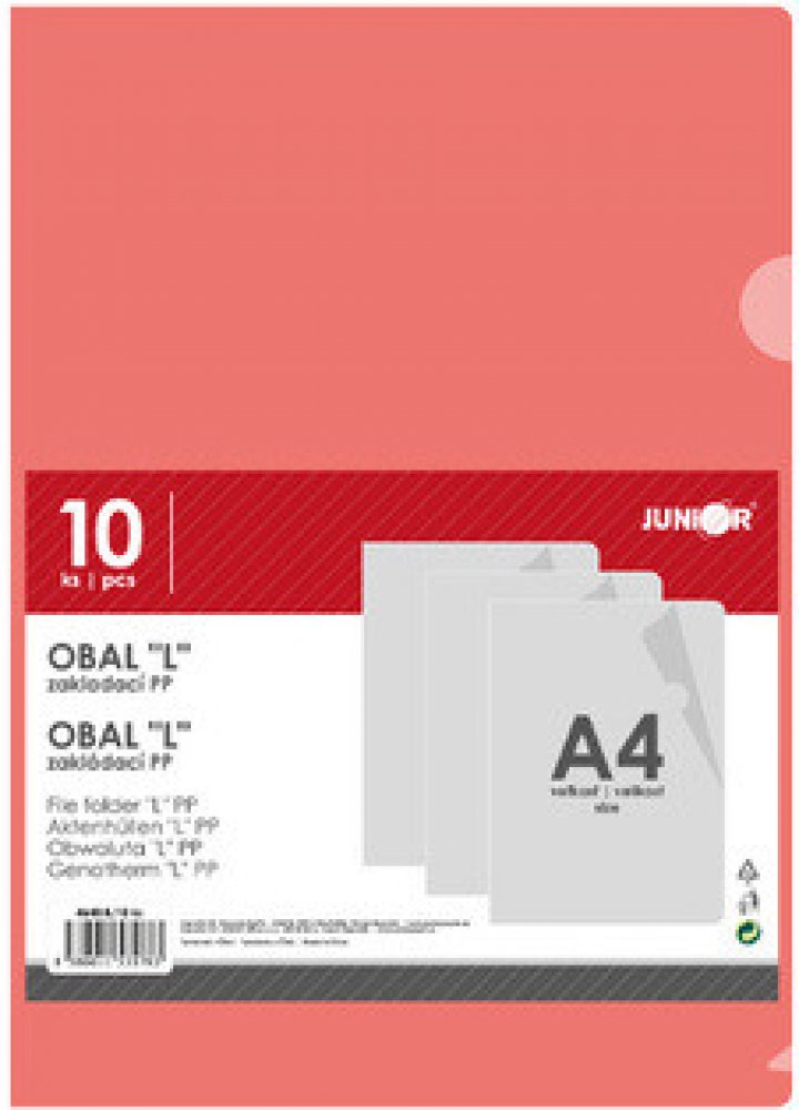 \nTransparentný zakladací „L“ obal na dokumenty formátu A4, z PP materiálu - 140 mic. Farba. červená.\n