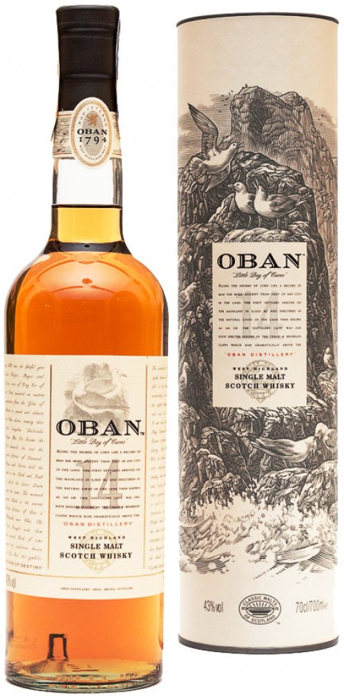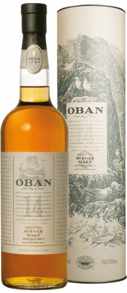 Palírna Oban v západní části skotské Vysočiny byla založena na konci 18. století, ale nyní ji vlastní Diageo. K této whisky se pojí jedinečná historie- v jeskyních těsně za georgiánskými budovami destilky se našly zbytky prehistorického člověka!
