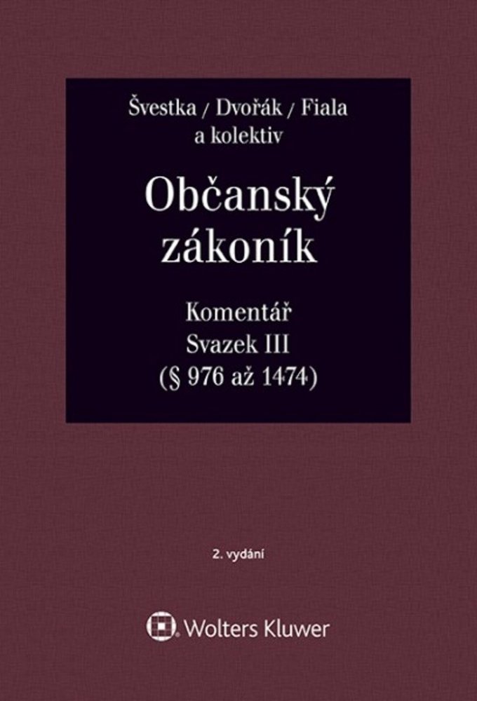 Úspěšný komentář občanského zákoníku vychází po pěti letech ve druhém, aktualizovaném a doplněném vydání. Kolektivní dílo více než 70 předních českých civilistů reflektuje novou judikaturu i literaturu, která od prvního vydání k problematice vznikla, a především reaguje na každodenní problémy praxe a snaží se je překlenout výkladem. Komentář vznikl pod vedením emeritního profesora katedry občanského práva Právnické fakulty UK prof. JUDr. Jiřího Švestky, vedoucího téže katedry prof. JUDr. Jana Dvořáka a soudce Ústavního soudu prof. JUDr. Josefa Fialy. Kolektiv tvoří zástupci všech právnických profesí včetně akademiků, díky čemuž jsou zastoupeny různé úhly pohledu a vyloženy také nezbytné procesní souvislosti. Svazek III obsahuje výklad všeobecných ustanovení k absolutním majetkovým právům a výklad věcných práv, tedy komentář § 976 až 1474.