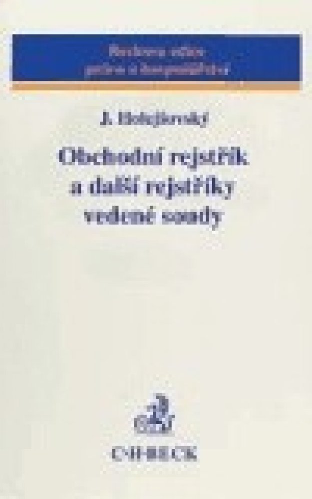 Publikace se věnuje u nás dosud neřešené problematice obchodního rejstříku Seznamuje s jeho povahou a účelem skutečnostmi a subjekty do něj zapisovanými jakož i s řízením týkajícím se zápisů do rejstříku před příslušným soudem Zabývá se jak otázkami aktivní legitimace k podání návrhu a splnění procesních podmínek řízení tak i okruhem účastníků rejstříkového řízení Reflektuje nejenom řízení v prvním stupni ale i řízení odvolací a dovolací Upozorňuje na způsoby rozhodování soudu jakož i na nejčastější pochybení účastníků Kniha obsahuje část věnovanou sbírce listin včetně charakteristiky do ní zakládaných listin Autor se ve stejném rozsahu zabývá i rejstříkem obecně prospěšných společností nadačním rejstříkem a zcela nově vzniklým rejstříkem společenství vlastníků