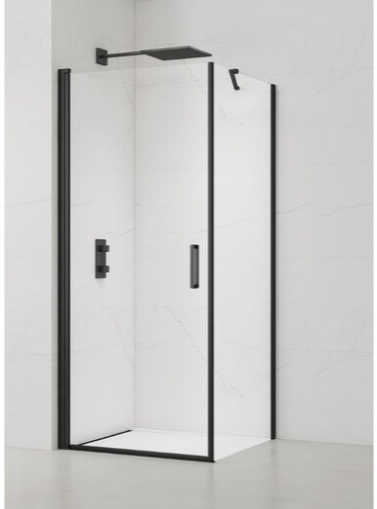 Sprchový kout bez vaničky a barvou profilů v černém matném provedení, výplň je z čirého skla bez dekoru. Produkt je opatřen povrchovou úpravou Easy Clean, která usnadňuje čistění a minimalizuje usazování vodního kamene. Pivotový systém otevírání. Určení - levá i pravá orientace. ZÁRUKA 5 LET, dostupnost náhradních dílů 10 LET.
