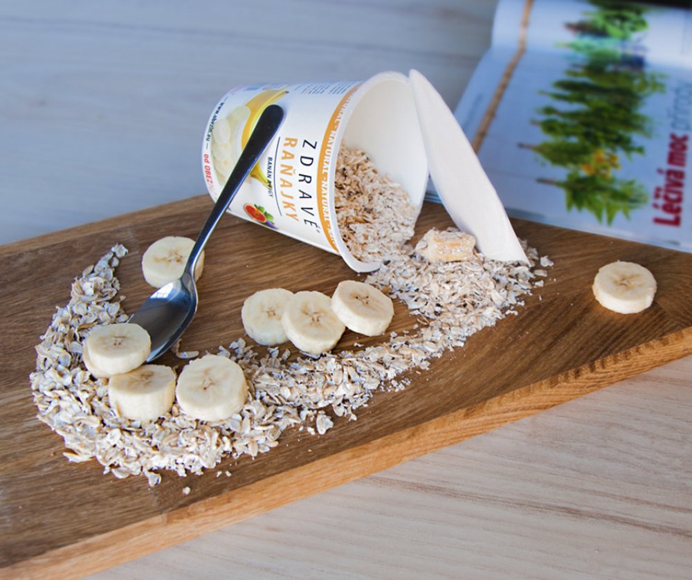 Složení: ovesné vločky 48,8 g (bezlepkové), ovesné vločky Jumbo 13 g (bezlepkové), kokosový cukr 1,2 g, banán 10 g a fíky 5 g.