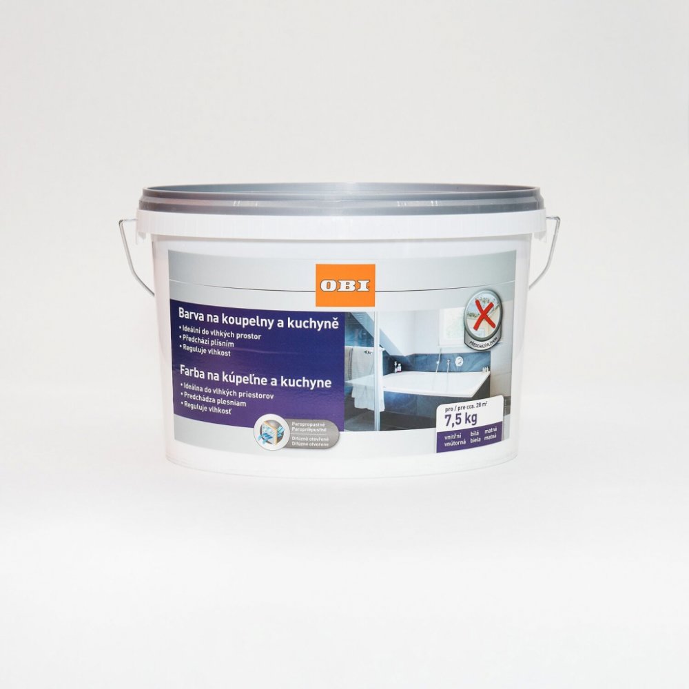 OBI Barva na koupelny a kuchyně je interiérová dobře kryjící bílá barva s ochranou proti napadení plísněmi. Je vhodná i do vlhkých prostor, jako jsou koupelny či kuchyně. Je možné ji použít i pro nátěry stěn a stropů v ostatních prostorách domu či bytu. Je vhodná na zdivo, omítku, papírové či skelné tapety a sádrokartonové desky.