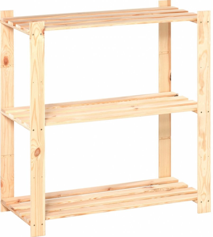 Malý OBI dřevěný základní regál z jehličnatého dřeva, certifikovaného FSC, je vybaven celkem 3 policemi a nabízí spoustu úložné plochy. Každá police má nosnost až 25 kg při rovnoměrném rozložení zatížení. Díky sešroubování je montáž velmi jednoduchá. Rozměry polic jsou (V x Š x H): 91 cm x 85 cm x 40 cm.