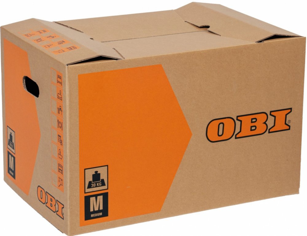 Praktické kartonové krabice na stěhování OBI nabízejí velký úložný prostor a účinnou ochranu pro stěhované předměty. Jsou tak nepostradatelným pomocníkem při stěhování. Odolná a stabilní krabice na stěhování pro bezpečnou přepravu vašich věcí Kartonová krabice je vyrobena z vlnité lepenky, což umožňuje komfortní přepravu jakýchkoli předmětů. Krabice snadno přenesete pomocí vyražených úchytů. Díky stručným a přesným pokynům krabice sestavíte během několika minut. Jsou navíc vyrobeny ze 100% obnovitelných surovin a kompletně recyklovatelné. Označení polí pro identifikaci obsahuj Krabice jsou opatřeny velkorysými poli pro označení nebo můžete využít zaškrtávacích polí na boční straně krabice, které vám pomohou se snadnou identifikací obsahu krabice. Krabice na stěhování OBI jsou k dispozici v několika velikostech S - 42 x 35 x 33 cm, 50 l - nosnost 30 kg M - 52 x 35 x 33 cm, 60 l - nosnost 30 kg L - 67 x 35 x 35 cm, 80 l - nosnost 30 kg XL - 75 x 42 x 40 cm, 126 l - nosnost 45 kg