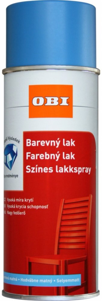 Laky ve spreji OBI jsou rychleschnoucí, univerzálně použitelné laky na vodní bázi se sníženým obsahem rozpouštědel. Vhodné pro použití v interiéru i exteriéru na širokou škálu podkladů - dřevo, kov, kámen, keramika, lepenky, proutí a přetíratelný past. Snadnou aplikaci zajišťuje balení ve spreji s velmi dobrým průtokem. Laky jsou vysoce krycí a vhodné na dětské hračky v souladu s DIN EN 71-3.