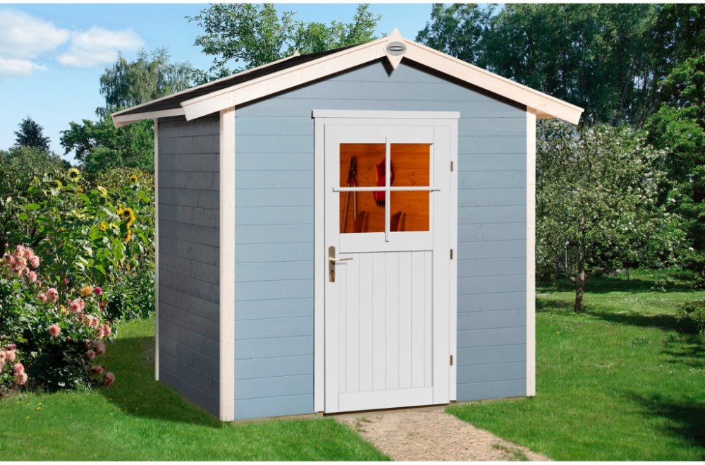 OBI Outdoor Living zahradní domek Monza A šedý/bílý je dřevěný srubový domek z 21 mm silných čistě ohoblovaných dřevěných fošen s perem a drážkou ze severského smrku opatřených ochrannou lazurou proti povětrnosti. Podlaha je nosná konstrukce z podlahových trámů ošetřených tlakovou impregnací a z 19 mm silných dřevěných prken s drážkou a perem. Výška boční stěny je 197 cm. Jednokřídlé dveře jsou vy...