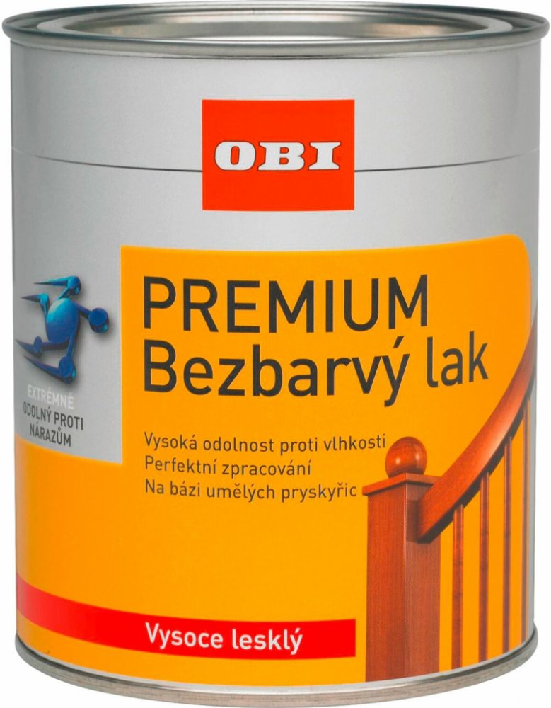 Kvalitní vysoce lesklý bezbarvý lak na bázi umělé pryskyřice pro bezbarvé, odolné nátěry dřevěného nábytku, jako jsou např. stoly, židle atd., pro vnitřní i venkovní použití. OBI Premium bezbarvý lak neobsahuje aromáty, snadno se aplikuje, má velmi dobrou roztíratelnost a je odolný proti nárazům a úderům. Lze jej také použít na jiné dřevěné povrchy, jako např. dřevěné obložení, dveře, apod., nebo ve formě bezbarvého ochranného nátěru na lakovaných plochách. Obsah vystačí na cca 8 m2.