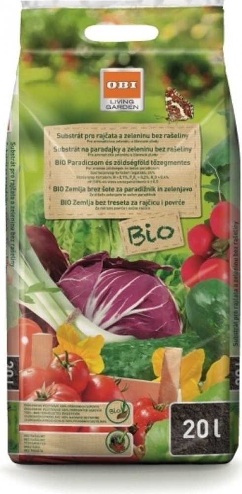 OBI Living Garden substrát pro rajčata a zeleninu bez rašeliny je speciální substrát připravený k přímému použití pro přesazování sazenic rajčat a zeleniny a jejich další pěstování v květináčích, kontejnerech, sklenících a na záhonech. - Dohnojen přírodním hnojivem se všemi důležitými živinami pro pěstování rajčat a ostatní zeleniny. - Vyrobeno ze 100 % obnovitelných surovin. - Ideální podmínky pro růst rostlin a vývoj kořenové soustavy díky trvale stabilní struktuře. - Přírodní cestou podporuje tvorbu a dozrávání plodů. - Aromatické plody díky přírodnímu draslíku. - Dle nařízení ES 834/2007 vhodné pro použití v ekologickém zemědělství. Doporučení pro použití: 1. Při použití na záhoně původní zeminu nakypřit a smíchat se substrátem pro rajčata a zeleninu bez rašeliny. 2. Pěstební nádoby naplnit substrátem tak, aby zůstalo dostatek místa pro kořenový bal. 3. Rostlinu opatrně zasadit a nádobu doplnit substrátem. Substrát kolem rostliny dobře přimáčknout a dostatečně zalít. 4. Dbejte na to, aby listy rostlin nebyly zasypané substrátem. 5. V růstové fázi udržujte substrát dostatečně vlhký.