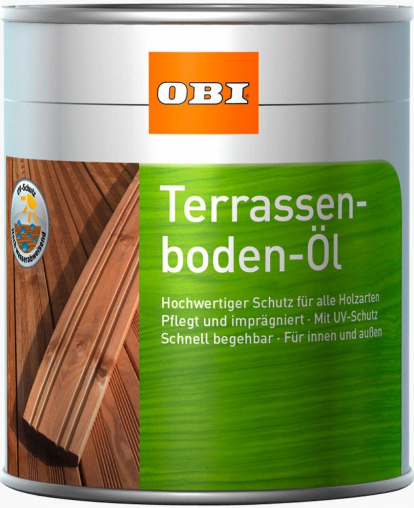 OBI terasový olej proniká hluboko do dřevěného podkladu, nechá vyniknout přirozenou kresbu dřeva, zvyšuje odolnost a necitlivost dřeva vůči povětrnostním vlivům a škodlivým UV paprskům. Chrání a ošetřuje, brání vysychání, praskání a šednutí, je odolný proti povětrnostním vlivům, zvyšuje odpudivost vody a umožňuje dobrou regulaci vlhkosti. Pro první ošetření a údržbu terasového dřeva v exteriérech. Ideálně přizpůsobený nárokům kladeným na podlahy z různých druhů dřeva, jako jsou např. douglaska, bangkirai, massaranduba, garapa, modřín, termodřevo v exteriérech. Obsah stačí na cca 12 m2.