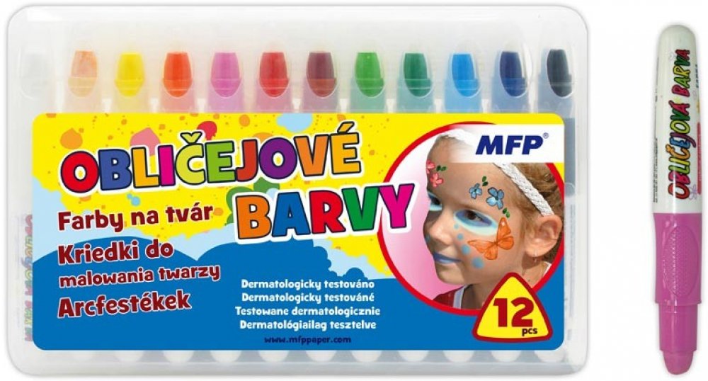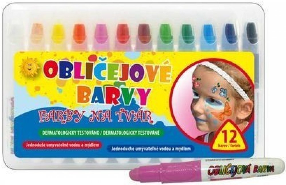 Set 12 ks barev na obličej na principu rtěnky (72g) - Díky těmto pestrým barvám vykouzlíte na tváři dítěte krásnou masku na karneval, párty nebo jinou oslavu. Dermatologicky testováno.