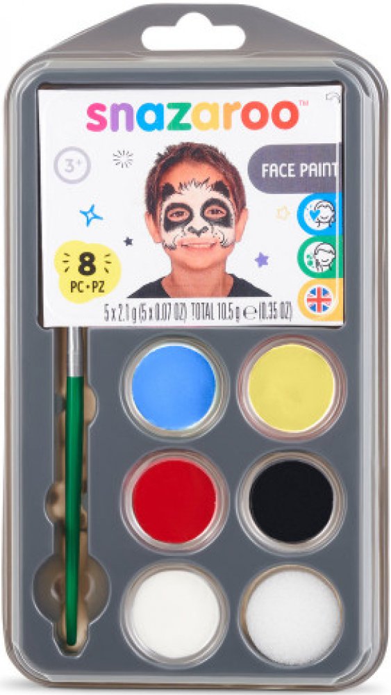 Velice kvalitní barvy na obličej. Snadno se nanáší, výborně drží a neotírají se, lze je snadno omývat. Splňují nejvyšší kosmetické atesty. Jsou vodou ředitelné a velmi koncentrované, takže vystačí na mnoho použití - minimálně 65 celých obličejů. Podrobný obrázkový návod na namalování mnoha různých obličejů.Balení obsahuje: 5 barev - modrá, žlutá, červená, černá a bílá - á 2 ml, (2,1 g) o Ø 2,8 cm ...