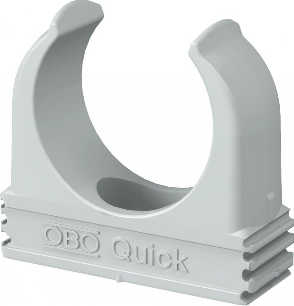 Příchytka na omítku k upevnění metrických pancéřových trubek, lehkých a těžkých izolačních trubek a elektroinstalační trubky Quick-Pipe. Univerzální možnosti upevnění na stěnu a strop v interiéru a v chráněném venkovním prostoru. S podélným prolisem pro boční vyrovnání při montáži pomocí šroubu do dřeva nebo natloukací hmoždinky. Montáž trubek bez použití nástrojů. Řaditelné vedle sebe také s příchytkami OBO Multi-Quick nebo starQuick. Velikost M16 až M32 lze našroubovat na závit M6. Vzdálenost upevnění 50 až 60 cm, max. vytahovací hodnoty F při teplotě 20 °C viz tabulku.