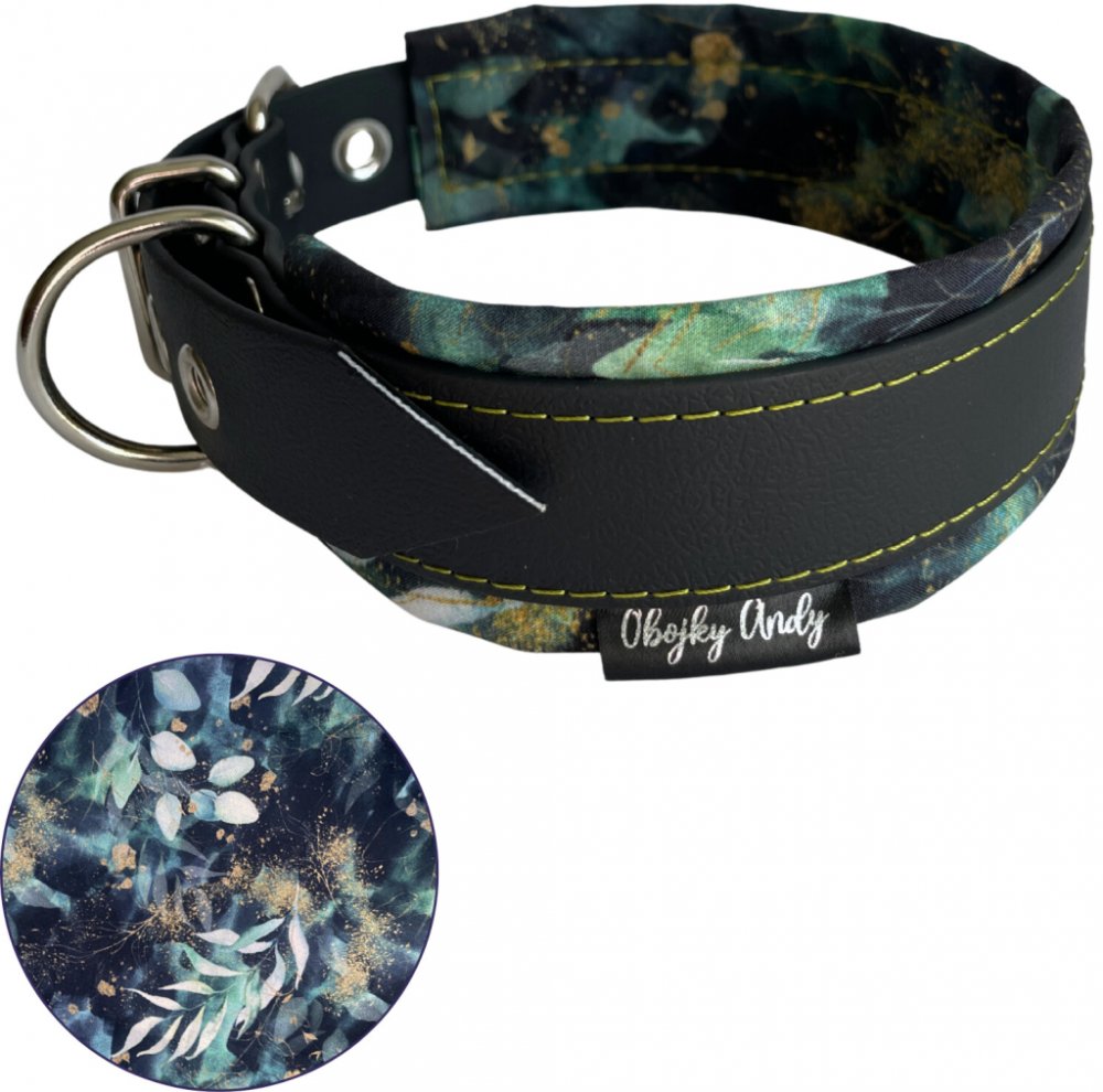 Obojky Andy Voděodolný Popruh a Forest Leaves Rukojeť + očko pro rychlejší připnutí pejska na vodítko či psí známku