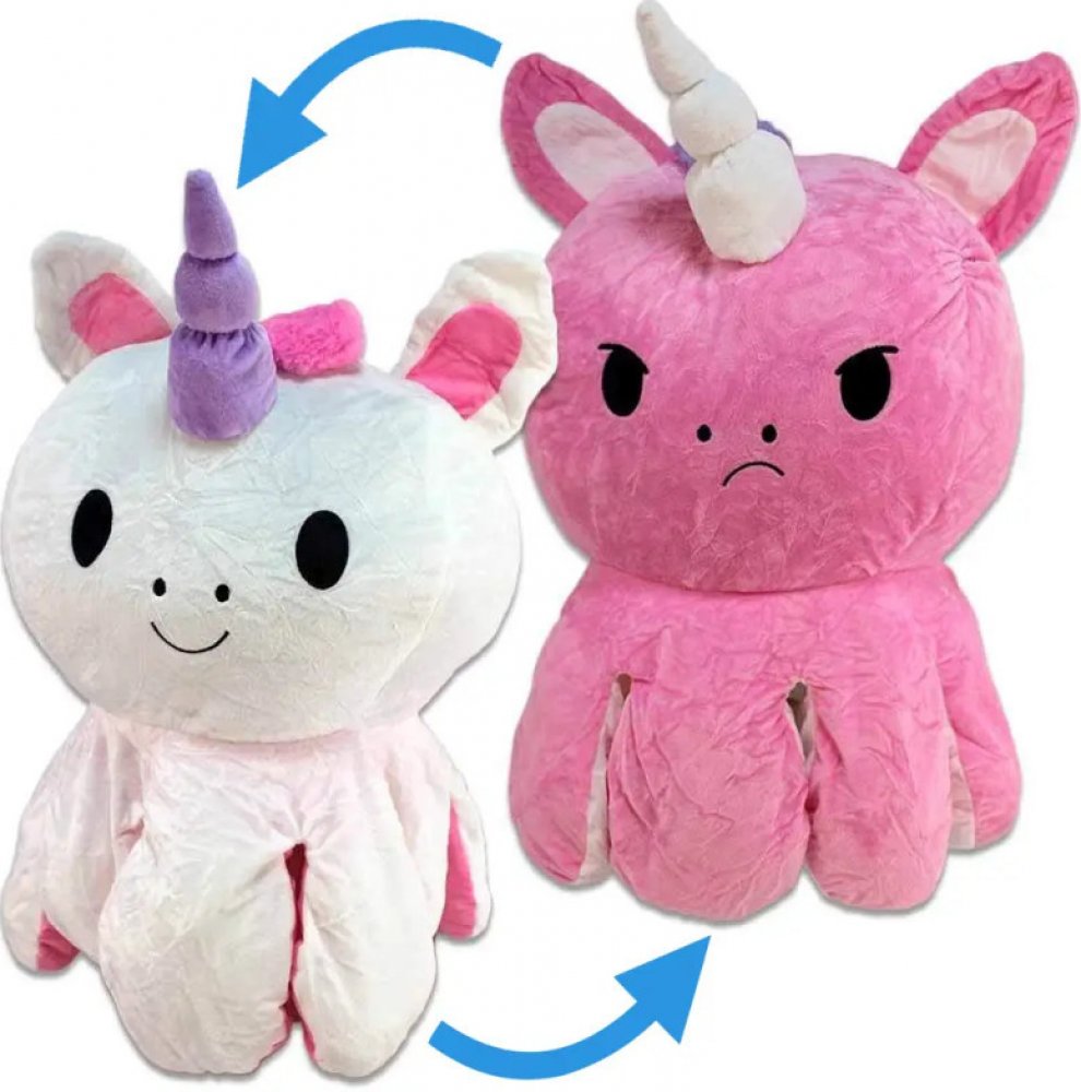 Tento roztomilý plyšový jednorožec s chapadly vás okouzlí nejen svým vzhledem, ale i proměnlivou náladou! Jedním otočením se z veselého bílého jednorožce stane růžový bručoun – a zase zpátky. Ideální společník pro děti, které chtějí vyjádřit, jak se právě cítí