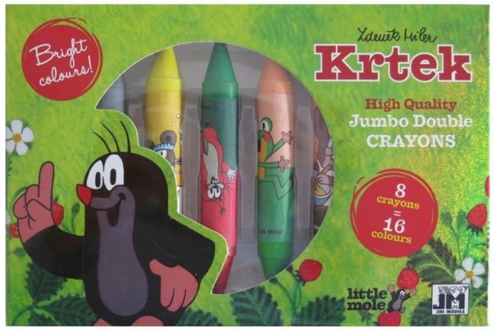 Oboustranné voskovky Krtek 8ks v krabičce 18x12cm 12ks v boxu - Produkt obsahuje osm velkých oboustranných voskovek s oblíbenými pohádkovými hrdiny. Rozměry balení 18 x 12 x 2 cm. Vhodné pro děti od 3 let. Cena za 1 ks hračky. Produkt obsahuje osm velkých oboustranných voskovek s oblíbenými pohádkovými hrdiny. Rozměry balení 18 x 12 x 2 cm. Vhodné pro děti od 3 let. Cena za 1 ks hračky.