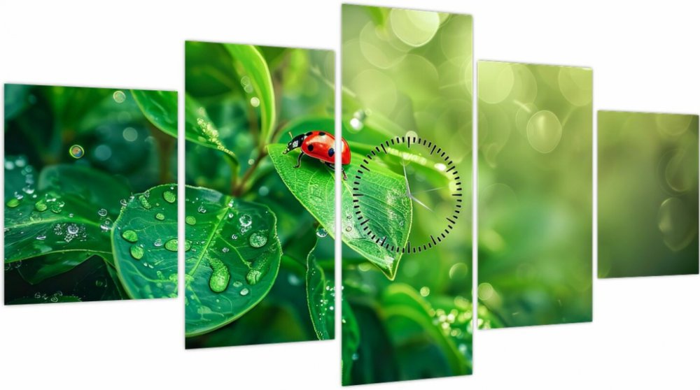 Obraz - Beruška (s hodinami), pětidílný 150x80 cm s hodinami