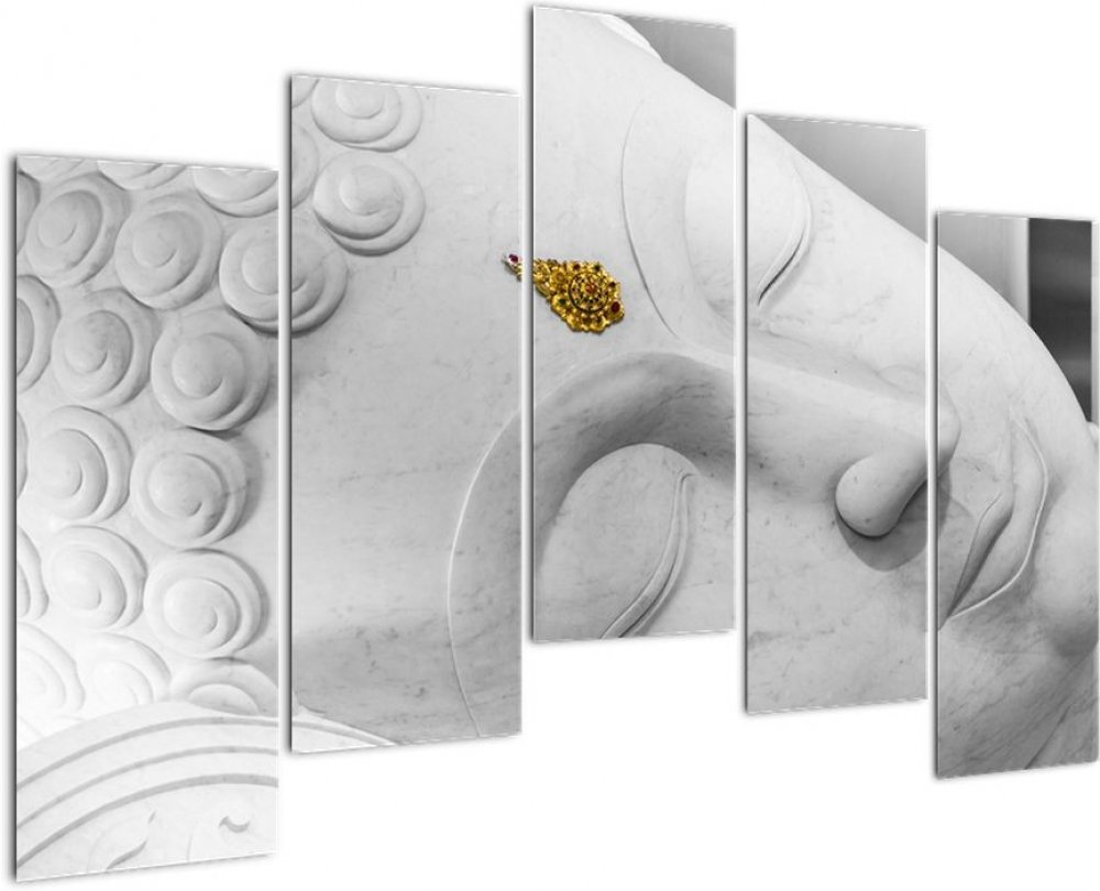 Obraz - Bílý Buddha, pětidílný 125x90 cm