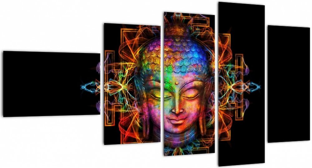 Obraz - Busta Buddhy v neonových barvách, pětidílný 110x60 cm