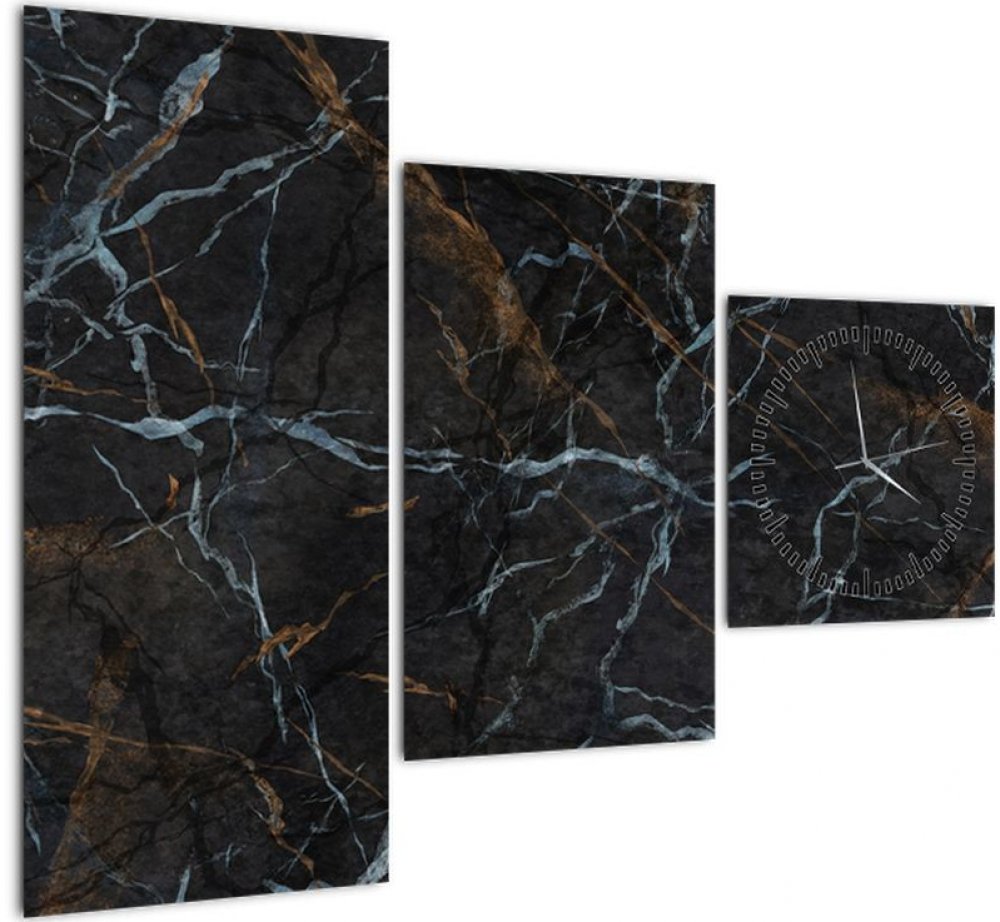 Obraz - Černý mramor (s hodinami), třídílný 90x70 cm s hodinami