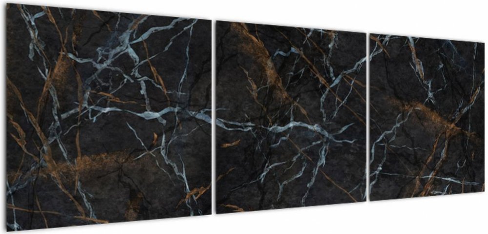 Obraz - Černý mramor, třídílný 150x50 cm
