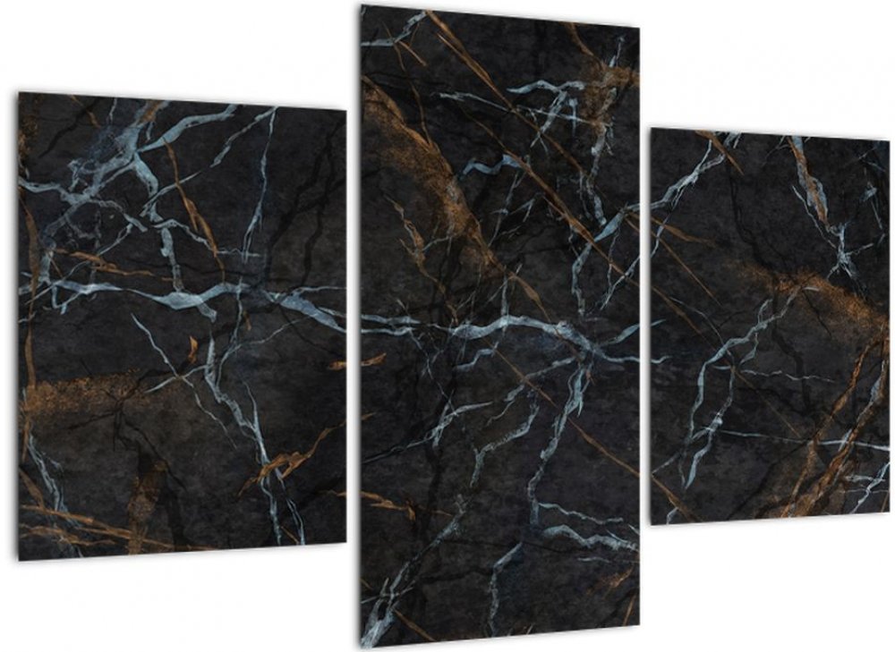 Obraz - Černý mramor, třídílný 90x60 cm