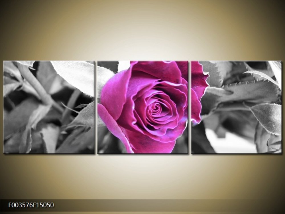 Obraz Fialová růže na černobílém pozadí, vhodný pro moderní interiér.Obraz tisknutý na kvalitním malířském plátně o velikosti 150x50cm, tlouška rámu je 2cm.Plátno je již natažené na blindrámu přetaženo až na zadní stranu, díky tomu jsou i boční strany obrazu barevné podle motivu předlohy, obraz obdržíte již hotový a připravený k pověšení. Obraz vyrobíme do 14dnů na základě Vaši objednávky