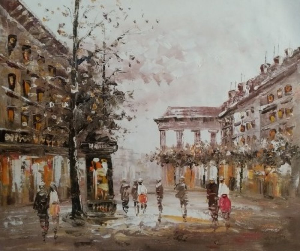 50 cm × 60 cm Ručně malovaný obraz olejovými barvami, vypnutý v dřevěném rámu. Obraz zachycuje klidnou atmosféru ulice města. Obraz je možné zarámovat do dřevěného ozdobného rámu, nebo jej opatřit dřevěnou ozdobnou lištou, nabídku naleznete v sekci Rámy a rámování.