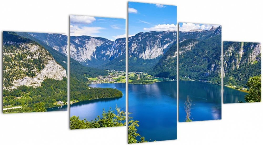 Obraz - Halštatské jezero, Hallstatt, Rakousko, pětidílný 150x80 cm