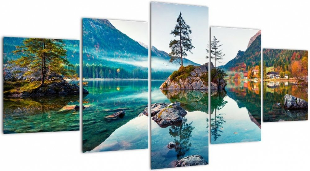 Obraz - Jezero Hintersee, Bavorské Alpy, Rakousko, pětidílný 150x80 cm