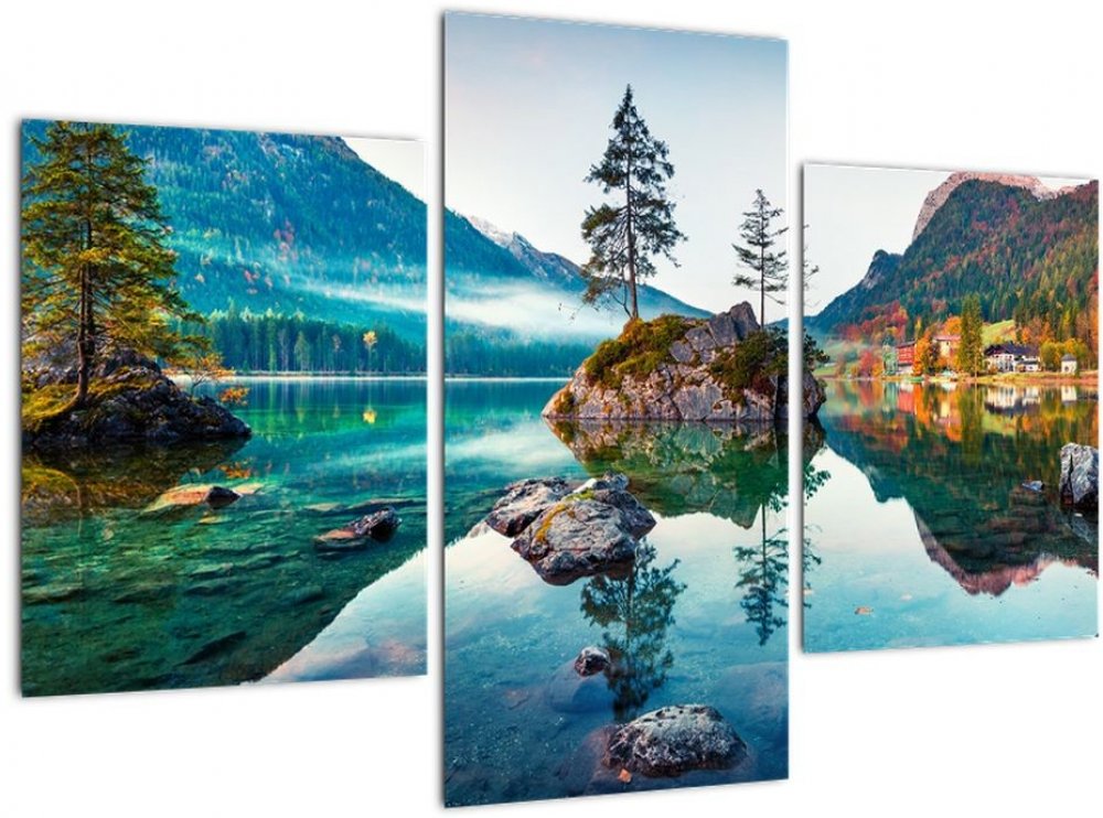 Obraz - Jezero Hintersee, Bavorské Alpy, Rakousko, třídílný 90x60 cm