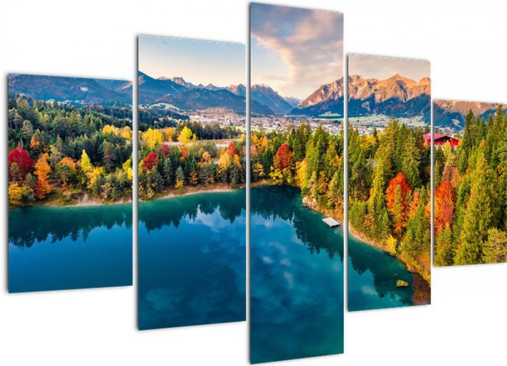Obraz - Jezero Urisee, Rakousko, pětidílný 150x105 cm