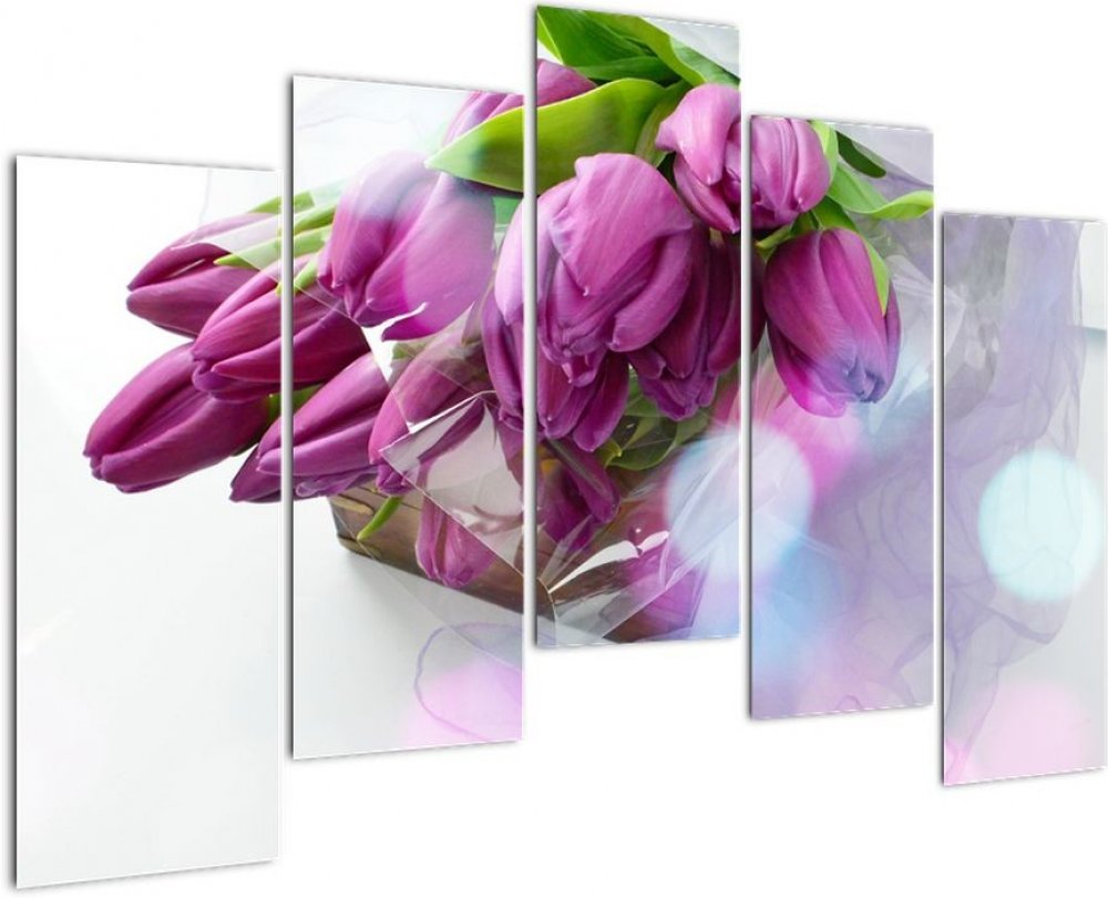 Obraz - kytice tulipánů, pětidílný 125x90 cm
