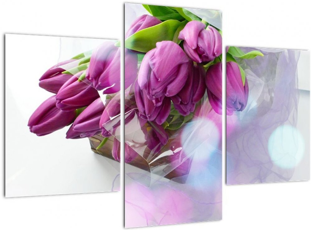 Obraz - kytice tulipánů, třídílný 90x60 cm