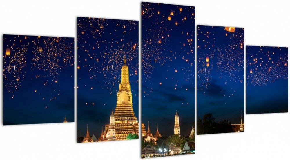 Obraz - Lampióny štěstí, Bangkok, pětidílný 150x80 cm