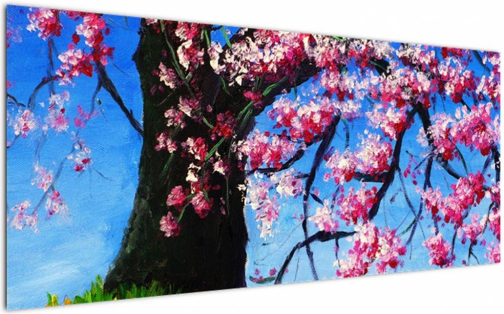 Obraz malované rozkvetlé třešně, jednodílný 120x50 cm