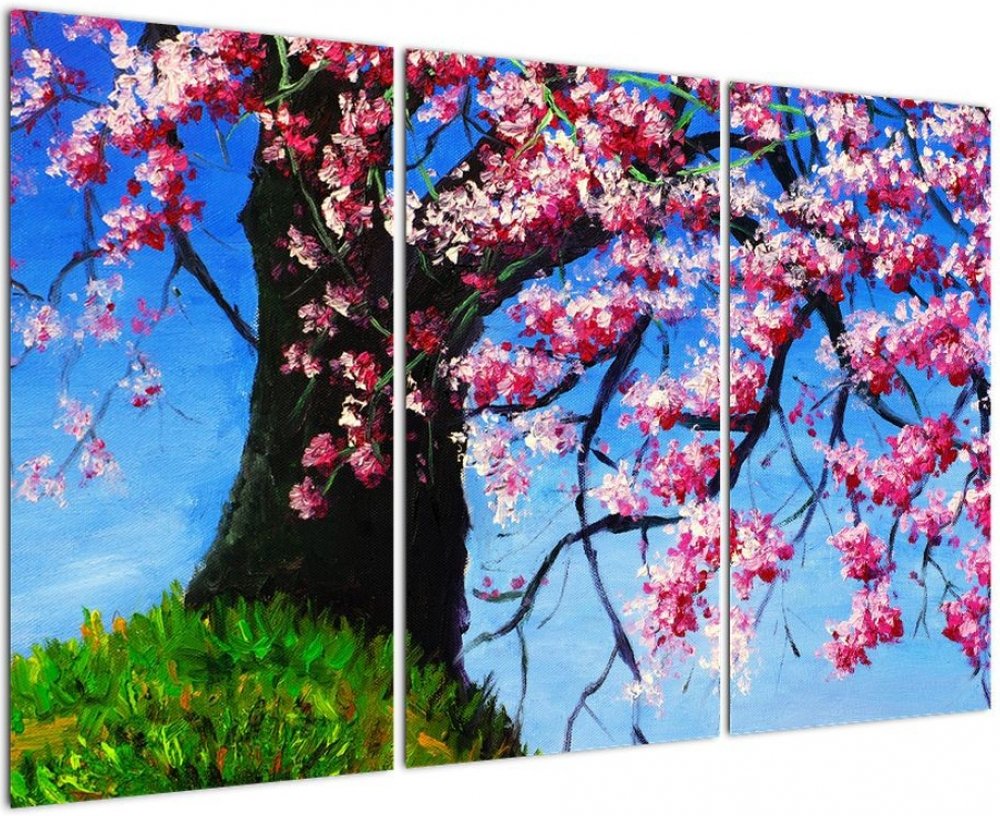 Obraz malované rozkvetlé třešně, třídílný 120x80 cm