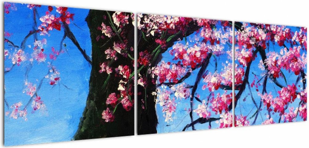 Obraz malované rozkvetlé třešně, třídílný 150x50 cm