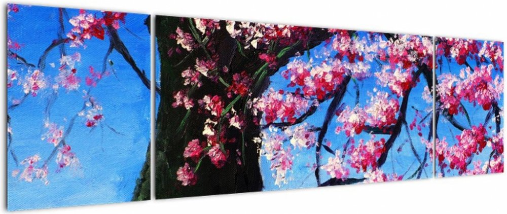 Obraz malované rozkvetlé třešně, třídílný 170x50 cm
