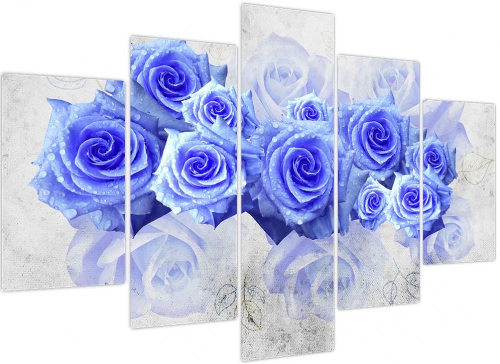 Obraz - Modré růže, pětidílný 150x105 cm