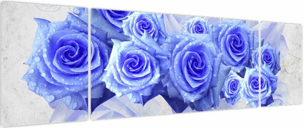 Obraz - Modré růže, třídílný 170x50 cm