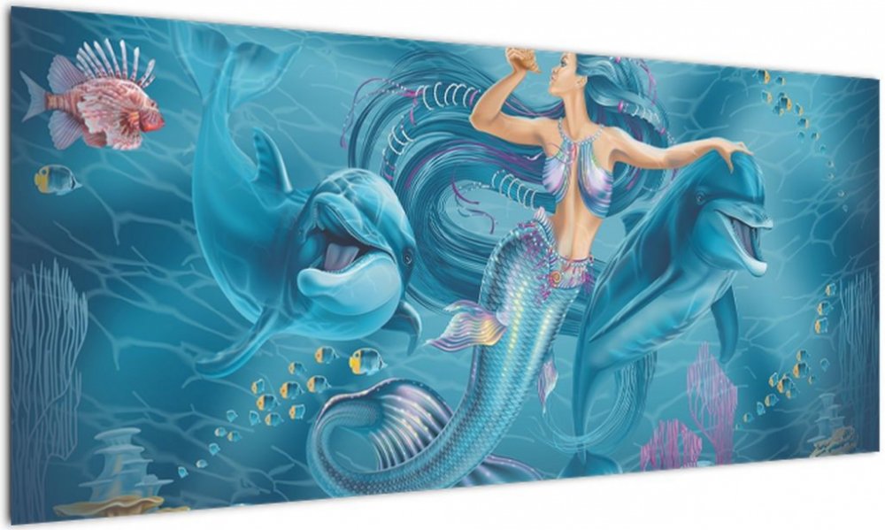Obraz - Mořská víla s delfíny, jednodílný 100x40 cm