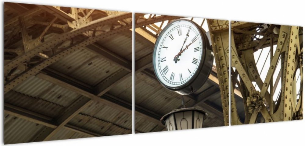 Obraz - Nádražní hodiny, třídílný 150x50 cm
